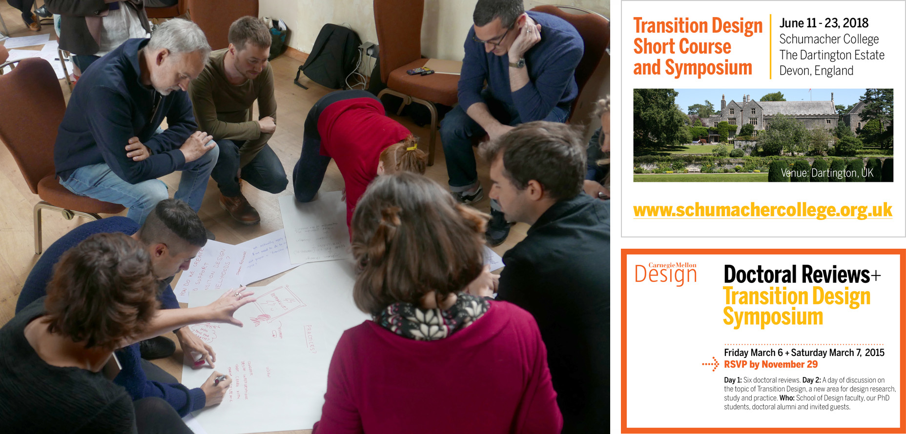 TDI hosted its first international Transition Design Symposium at Carnegie Mellon University in 2015, followed by a second symposium at Dartington/Schumacher College in the UK in 2016. In 2017, TDI faculty participated in a third symposium, Southern Perspectives on Transition Design, hosted by EINA University in Barcelona, Spain. A fourth symposium, Transition Together, was held in 2018, again at Dartington/Schumacher College, bringing together a diverse group of scholars and practitioners to explore systems-level change.